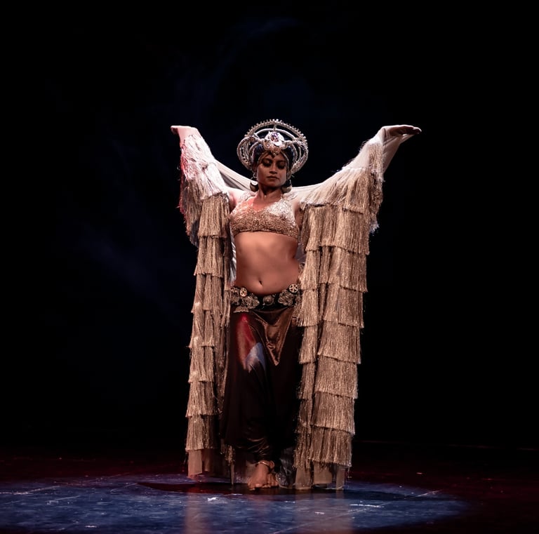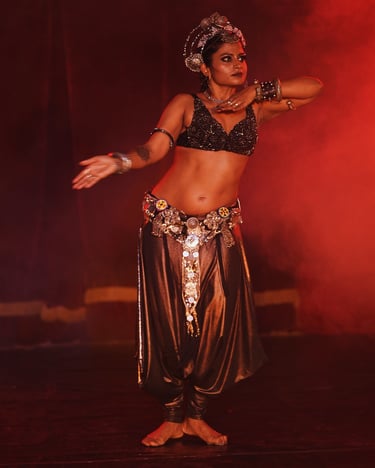 Performance is where my creative voice comes alive. Each piece I present is rooted in Belly dance, enriched with Tribal Fusion influences, musicality, and mindful expression. Through movement, I aim to tell stories that feel powerful, grounded, and emotionally resonant.